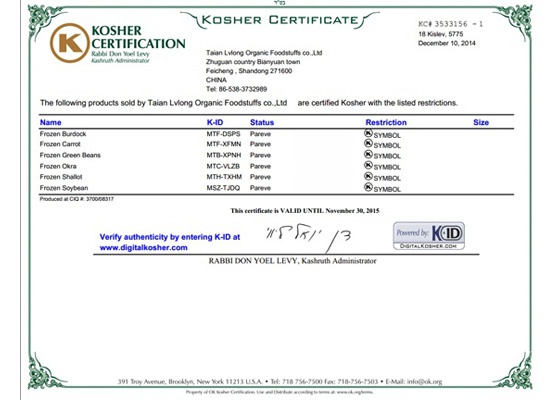 泰安绿龙获欧美“KOSHER”认证